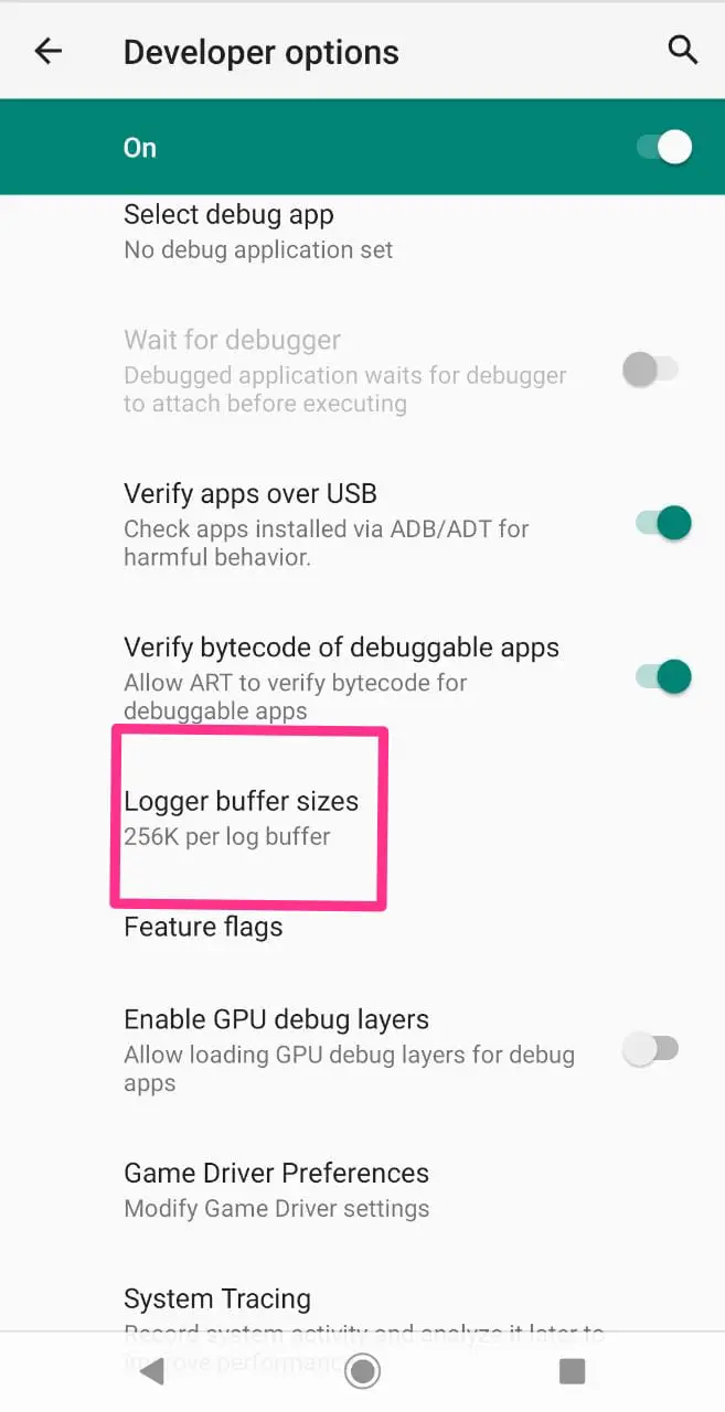 3. USB 디버깅을 허용한 디바이스 로그 버퍼 사이즈