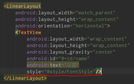 style="@style/(여러분이 <style> 안에 지은 이름)"