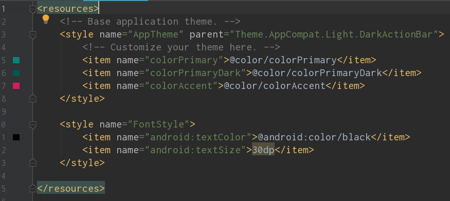 여러분이 사용하였던 AppTheme가 여기에 저장되어 있었습니다.