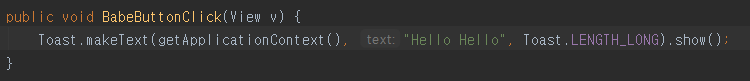 MainActivity로 와서 방금 xml에서 사용하겠다고 선언했던 BabeButtonClick 메서드를 작성하겠습니다.