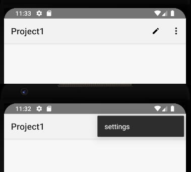 Appbar 메뉴는 오른쪽에 보이는 new버튼과 ... 버튼입니다.
