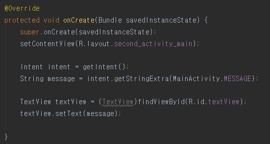 second_activity_main.xml에서 선언한 TextView를 참조하고