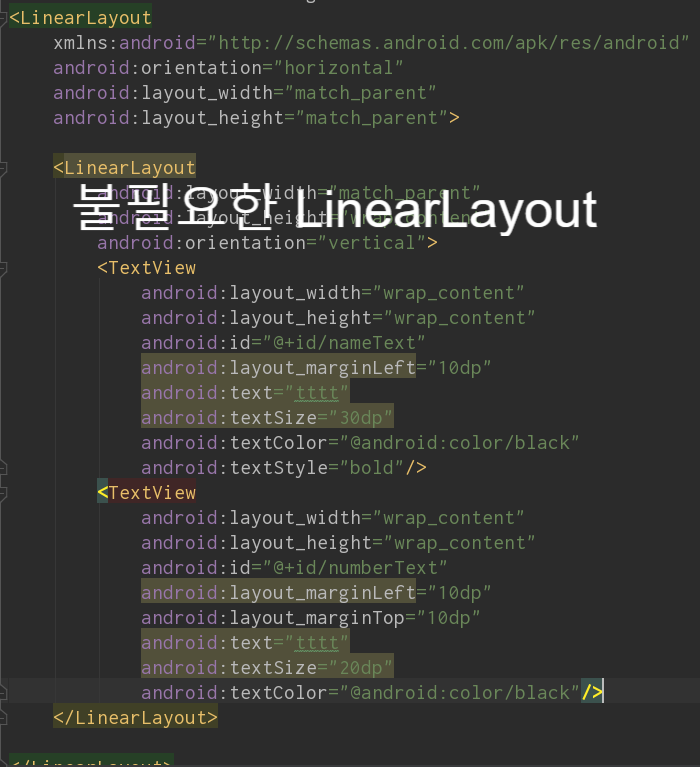 사실 ImageView까지 있었는데 ImageView를 빼고 LinearLayout을 지우는 것을 깜빡했습니다.
