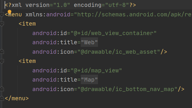 중요한 것은 id값입니다. 메뉴의 <item> 속성들의 id값을 내비게이션 그래프의 시작점의 id값과 같게 만들어야 연결이 됩니다.