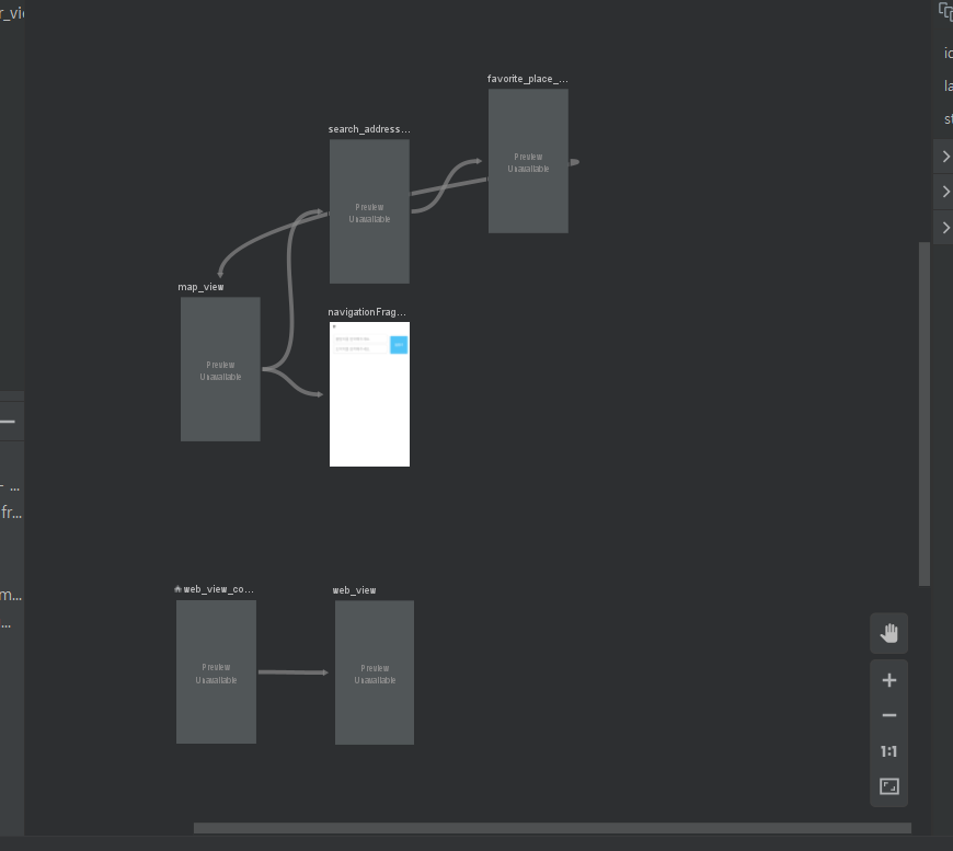 이러한 그래프 형태는 다양한 IDE에서 볼 수 있습니다. 특히 게임 엔진에서 오래 전부터 사용한 방식인데 안드로이드는 이 그래프를 통해 Activity/Fragment의 내비게이션을 좀 더 편리하게 설정할 수 있습니다.