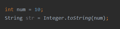 변환을 위한 toString()메소드는 Integer 클래스에 있습니다. toString() 메소드는 static으로 선언되어 있기 때문에 .연산자로 바로 접근이 가능합니다. toString()의 매개변수로 int형 변수를 선언하면 String형으로 return 되는 방식입니다.