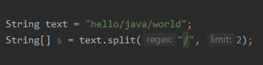 이 메서드는 "/"을 기준으로 문자열을 split해달라는 뜻입니다. 그런데 배열의 개수가 2로 되어있습니다. 그렇기 때문에 hello와 java/world로 나누어 집니다.